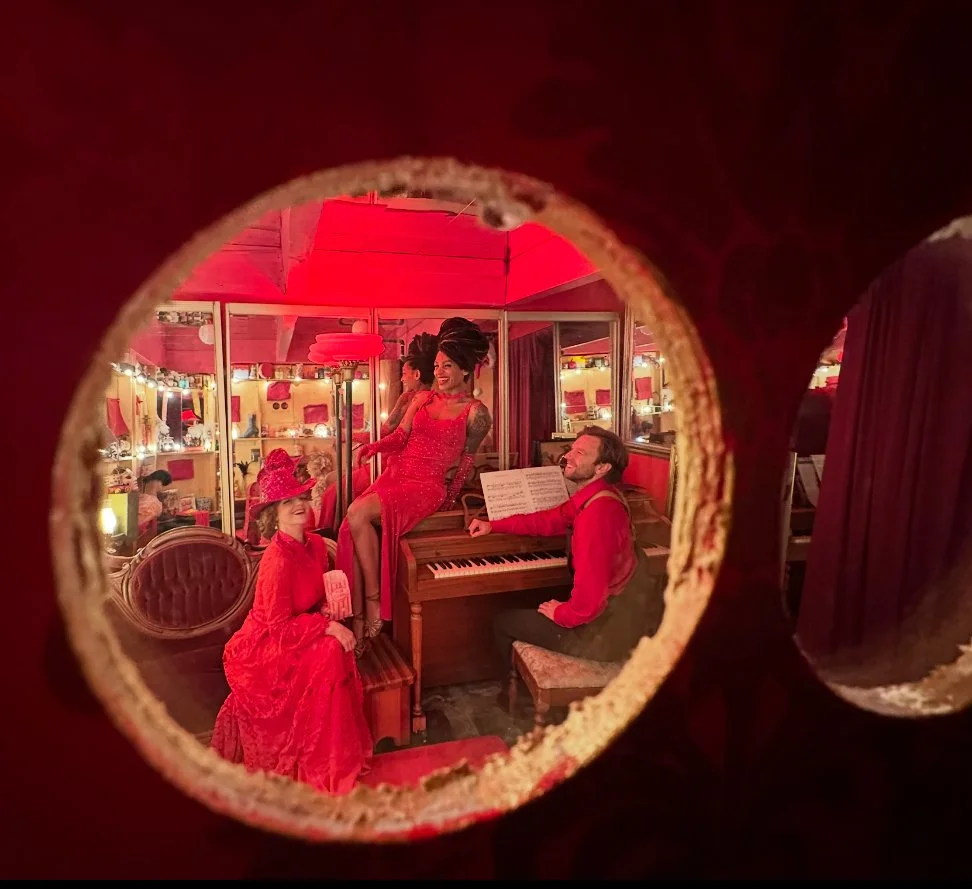 Peep a real live Sparking Showgirl as she sings and dances in the Madam’s Music Box. Many shows also feature a live piano player.